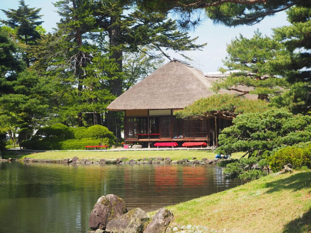 ①御薬園での早朝ヨガ…御薬園(おやくえん)は、かつて会津領主・藩主が別荘として利用していた庭園で、室町時代のころに霊泉(れいせん)が湧き出したこの地に、時の会津領主であった葦名氏が別荘を建てたのが始まりといわれています。園内は心字の池(しんじのいけ)を中心とした東山山系を借景とする回遊式庭園と、茶席・書院・御慰所(おなぐさみどころ)として使われた御茶屋御殿、薬草標本園、重陽閣から構成されています。開園前の園内でヨガを楽しんでいただきます。その後御薬園散策いただき御薬園内御茶屋御殿内で庭を見ながら田季野様の健康朝食をお召し上がりいただきます。