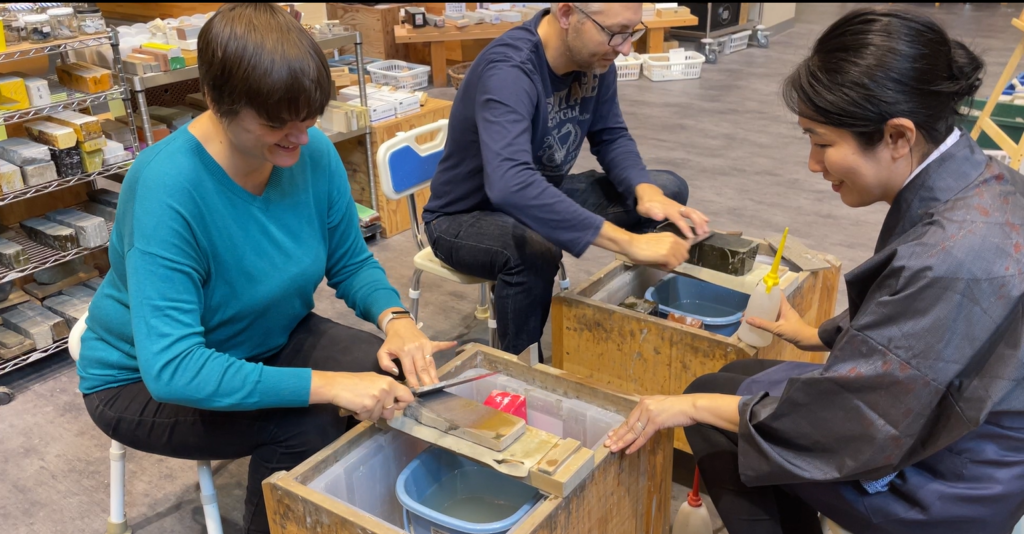 15:30 天然砥石館にて研ぎ体験