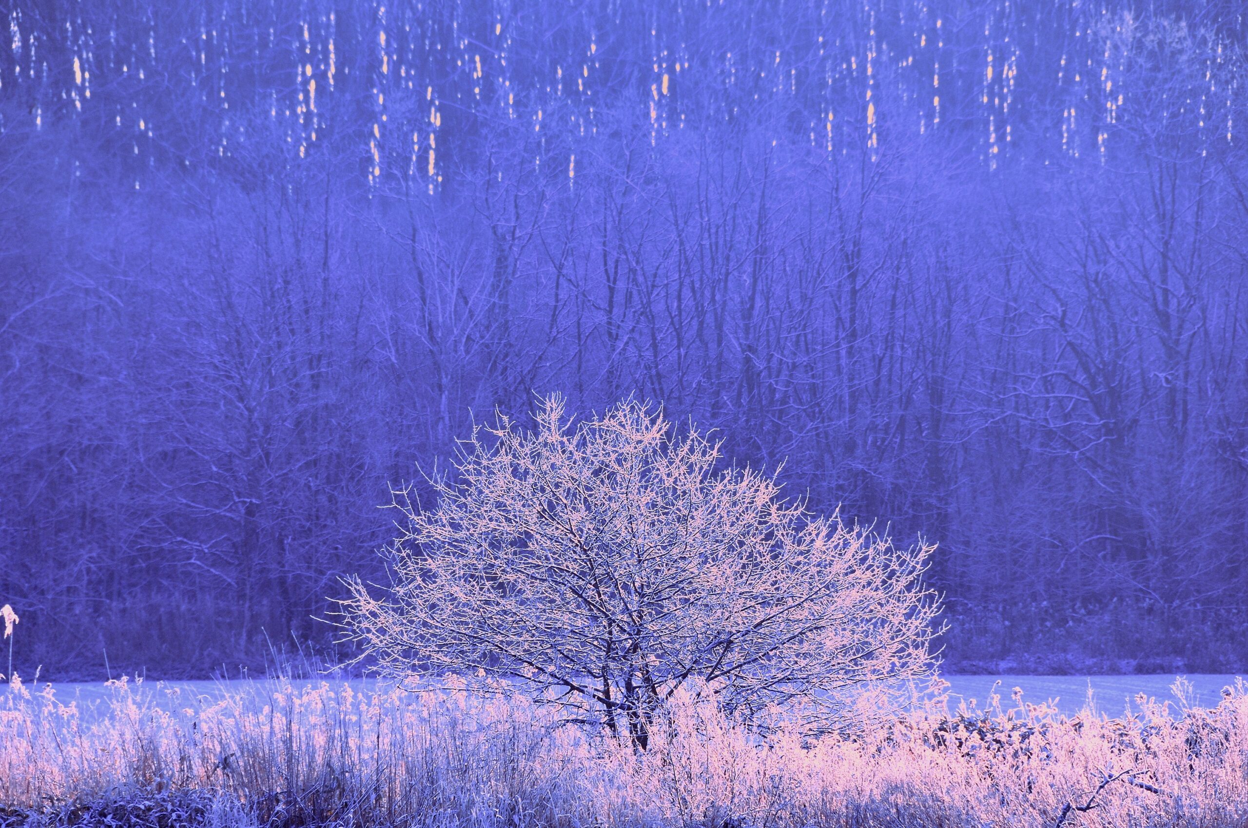 早朝の猿別川周辺では、美しい霧氷が見られることも。