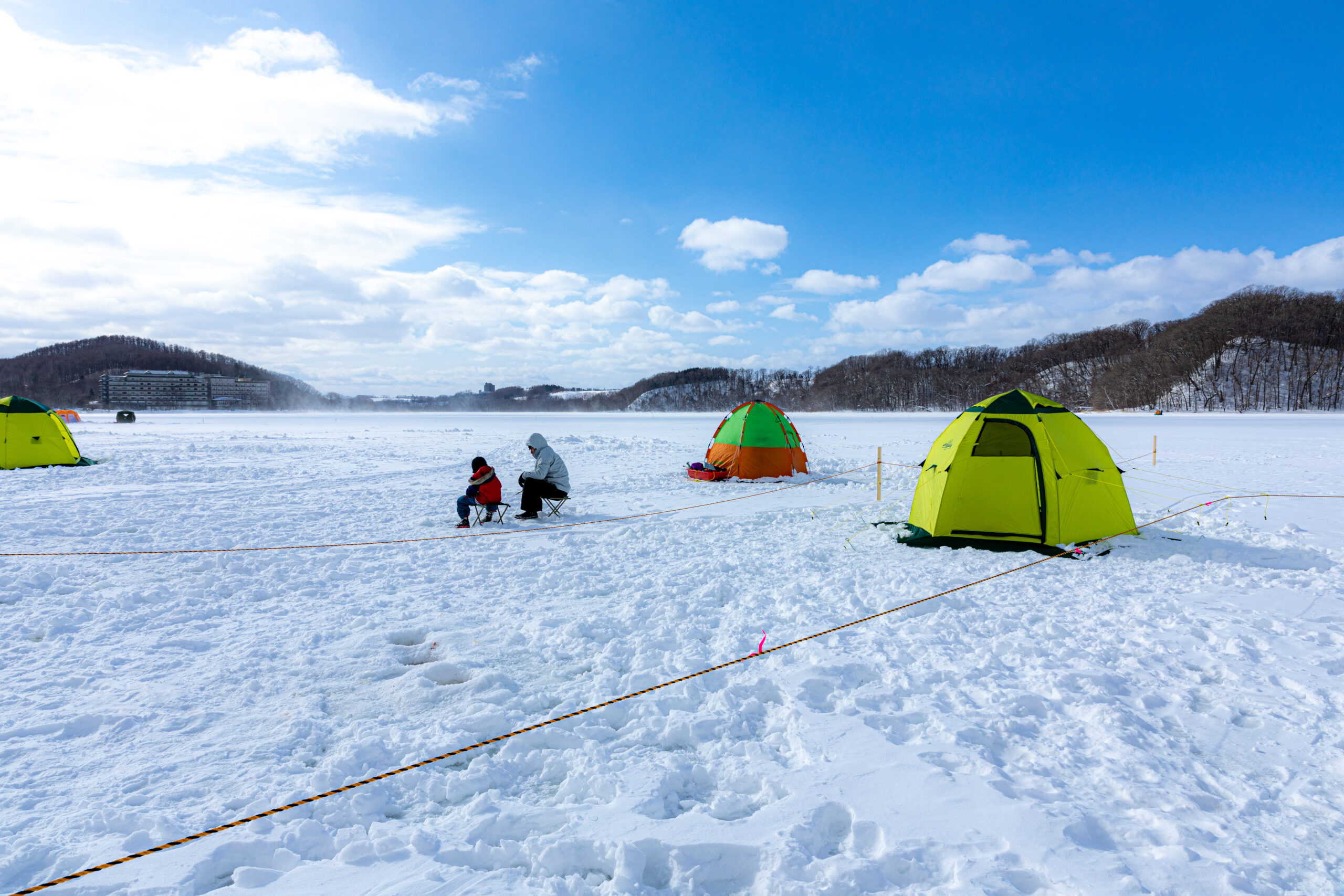 テントの中でぬくぬく釣り。釣ったらその場で唐揚げに!