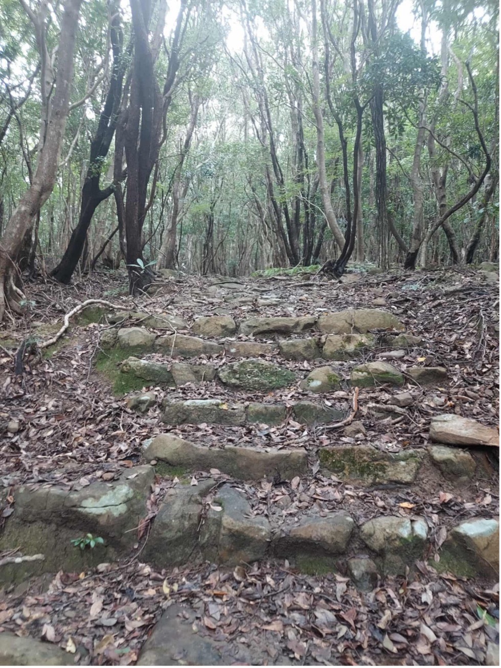 大辺路街道は、熊野古道でもあまり歩く人は少ない海沿いの道です。海を見下ろす屈指の景観と往時の佇まいを残す「長井坂」は登り口、下り口は急な勾配の坂ですが、峠道は枯木灘の眺めもよく、平坦な区間が長く続きます。備長炭の材料になるウバメガシ等海岸性常緑樹が覆う山の斜面の南側には広大な太平洋が開け、道沿いにはそのままの自然林が残され心地よいハイキングがお楽しみいただけることでしょう。